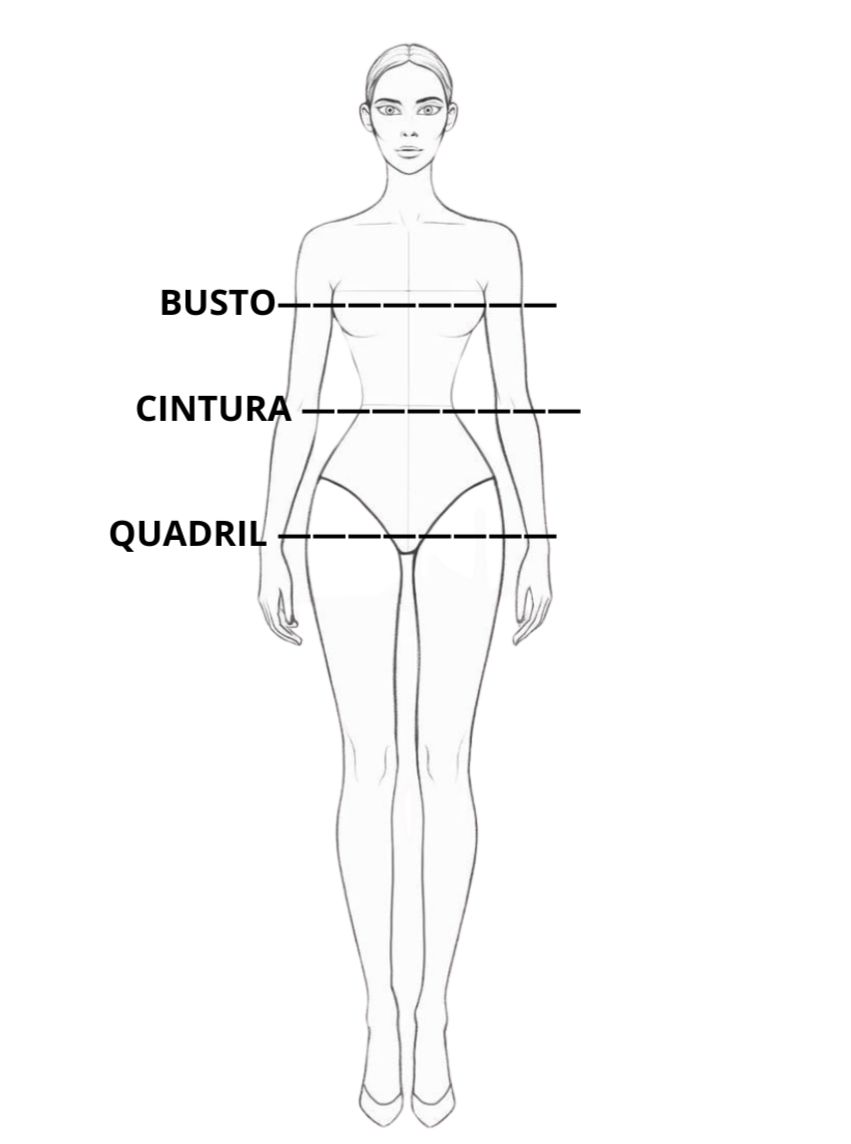 | Tamanho | Busto | Cintura | Quadril |